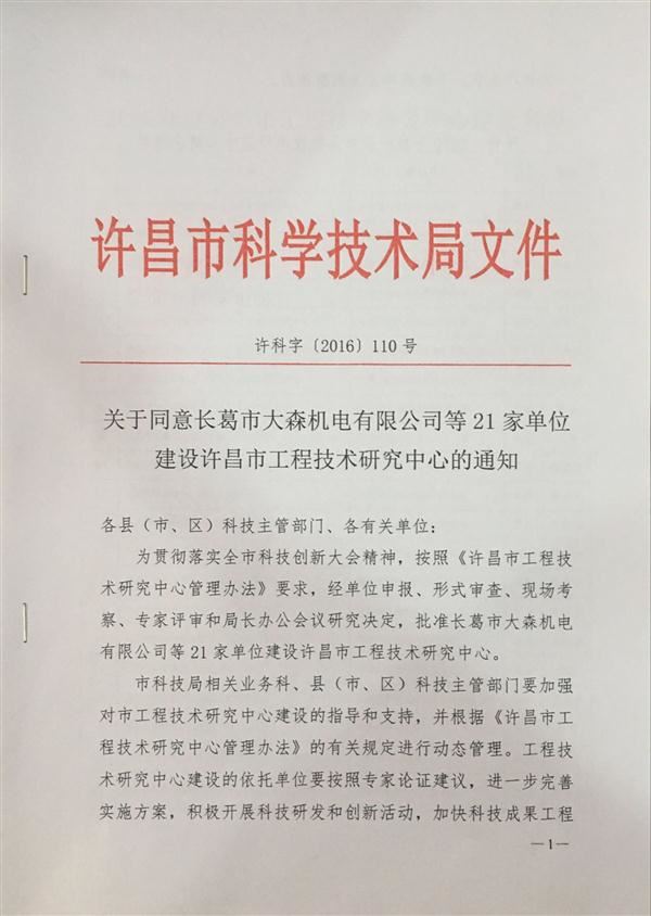 熱烈祝賀我公司成立許昌市工程技術(shù)研究中心