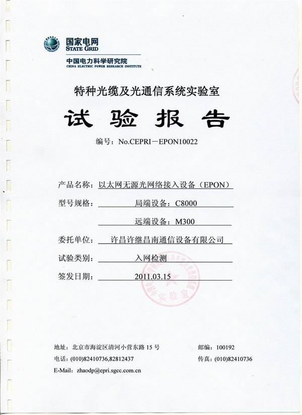 EPON國(guó)網(wǎng)檢驗(yàn)報(bào)告