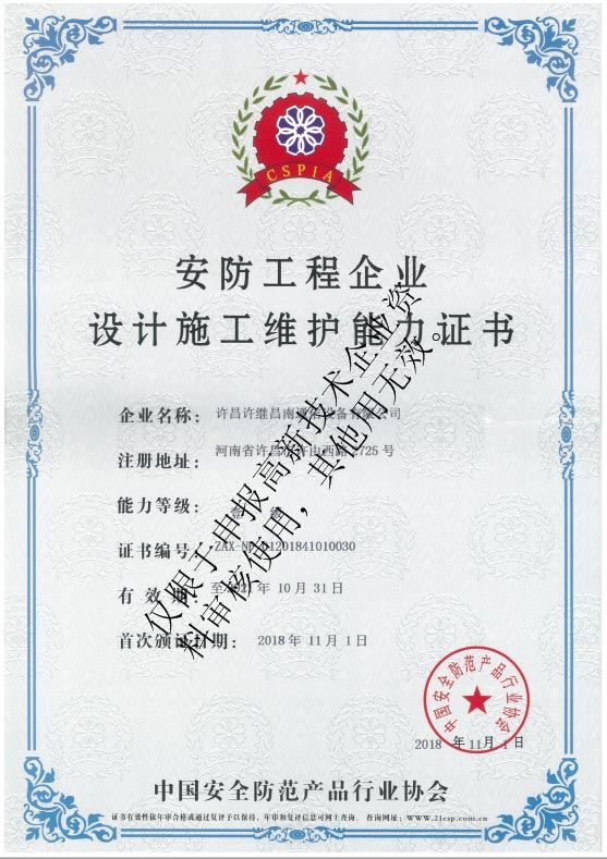 安防工程企業(yè)設計施工維護能力證書